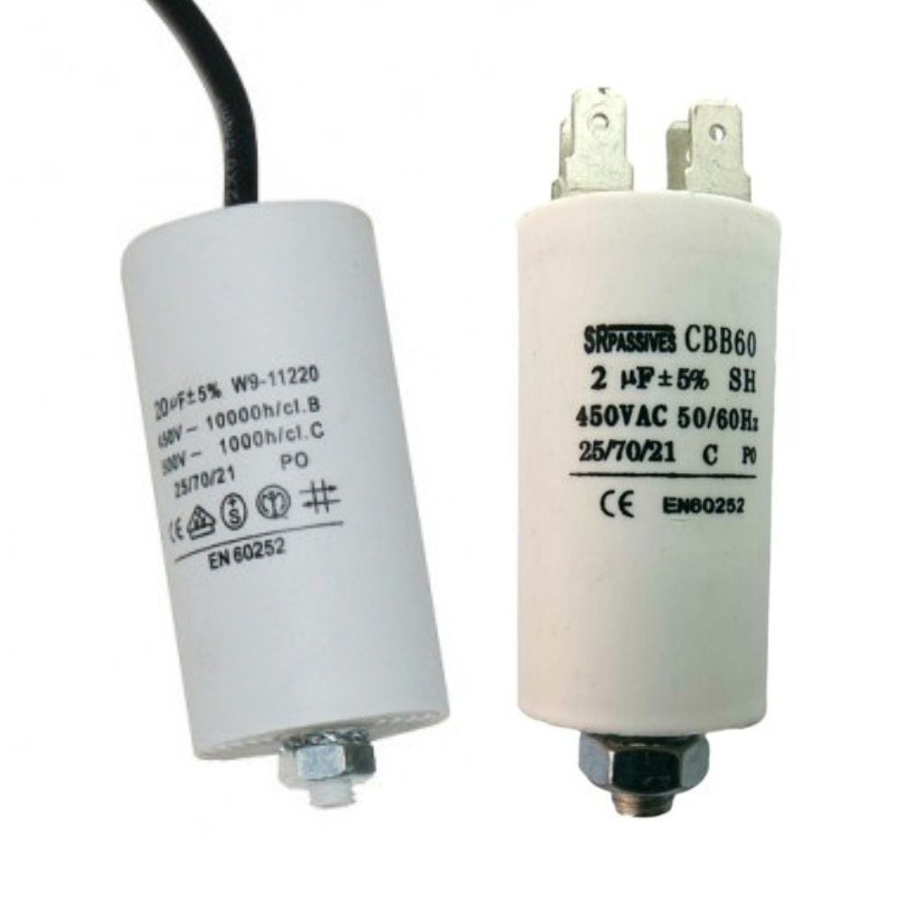 | Capacitance | 2µF, 2.5µF, 3µF, 4µF, 5µF, 6µF, 8µF, 10µF, 12µF, 14µF, 15µF, 16µF, 20µF, 25µF, 30µF, 35µF, 40µF, 45µF, 50µF, 60µF, 70µF, 80µF, 100µF |