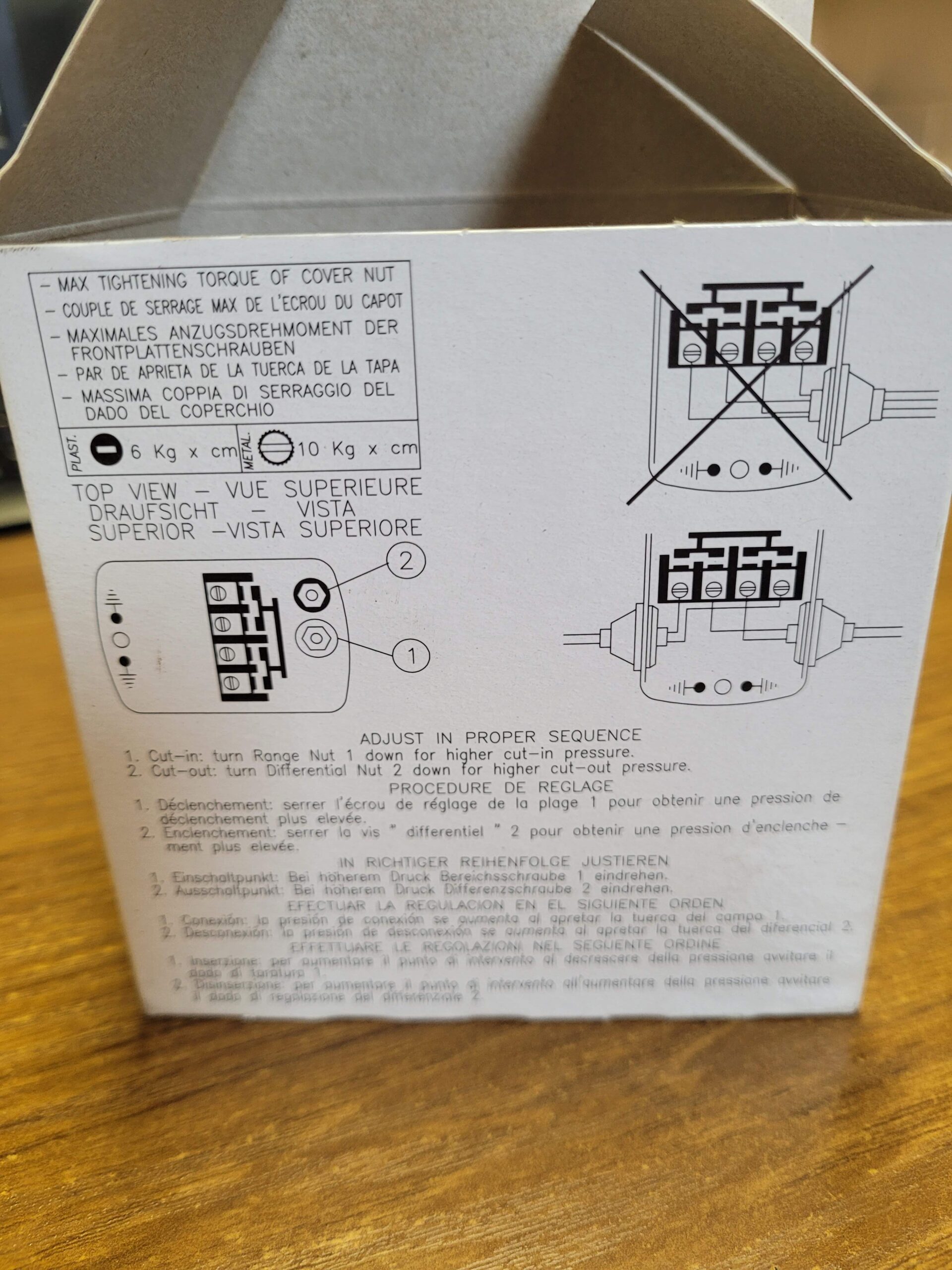 The Square D pressure switch is used to regulate the cut in and cut out pressure on a water pump system. It comes with two adjustable internal regulators which can be manually set to alter the cut in and cut out pressure of the system. For use with submersible or above ground well pumps, reciprocating pumps, jet pumps or as a replacement switch.